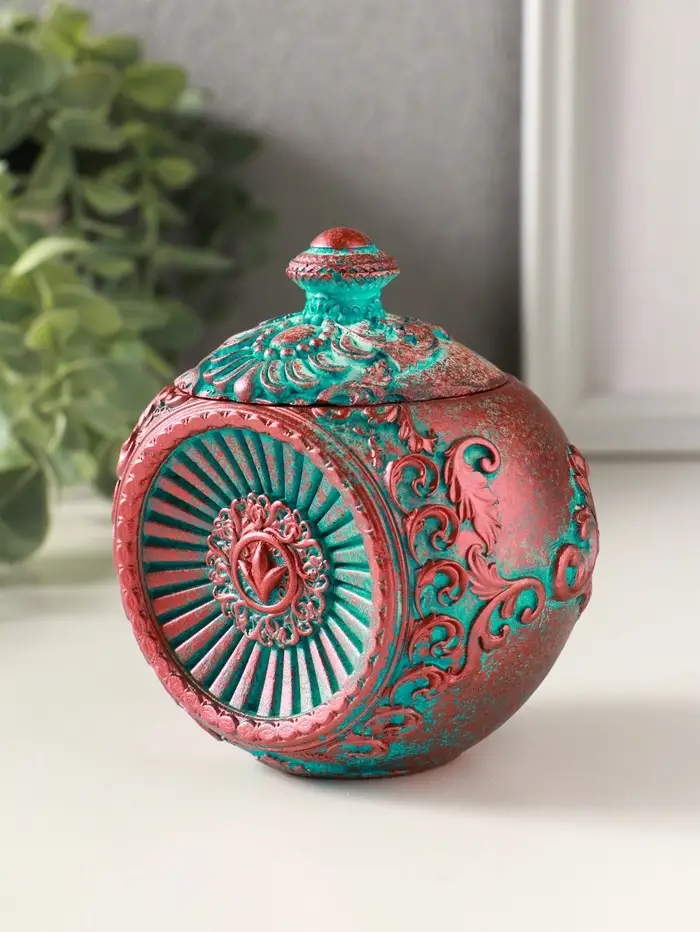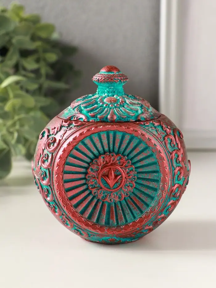 Шкатулка для украшений с крышкой «Флоренция», 10×9 см, гипс, окисленная медь