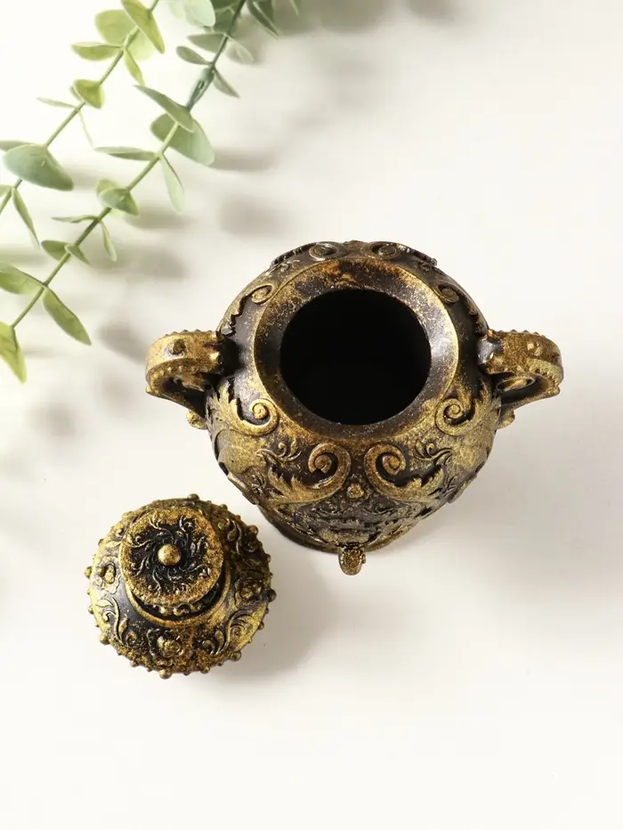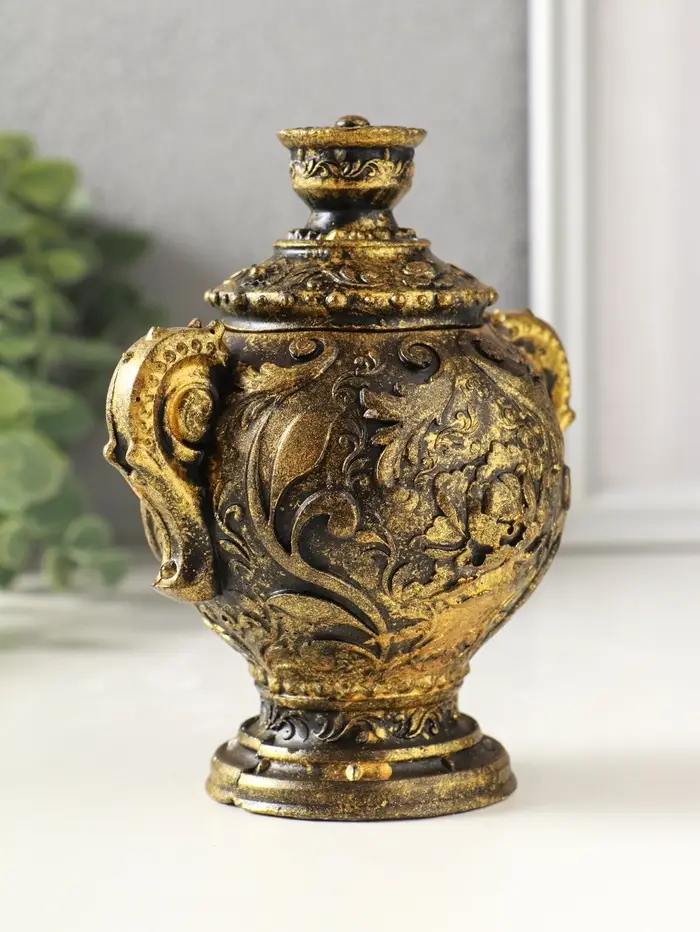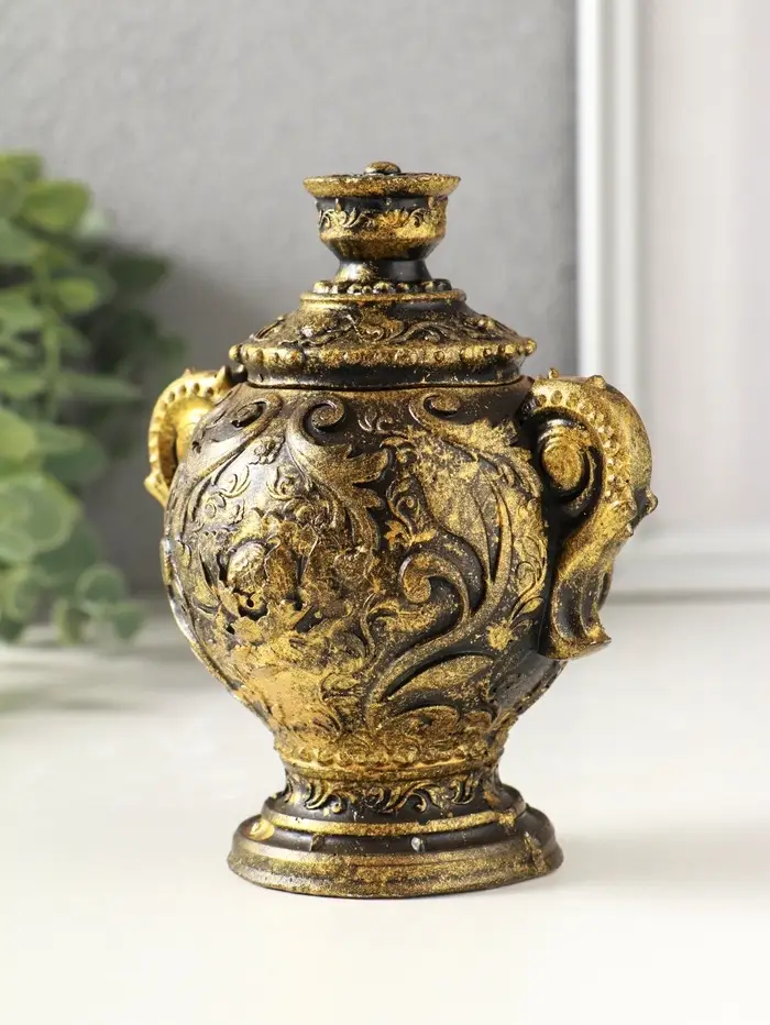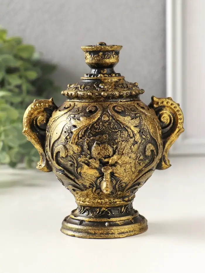 Шкатулка для украшений «Самовар» 10×12×8 см, гипс, состаренное золото