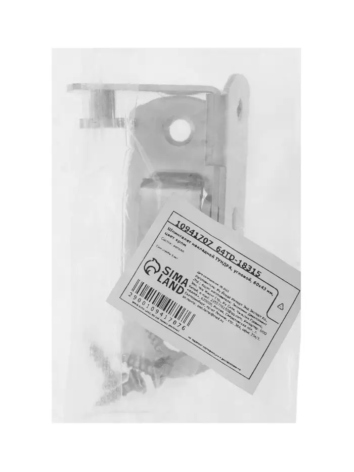 Шпингалет накладной ТУНДРА, угловой, 60×43 мм, цвет хром