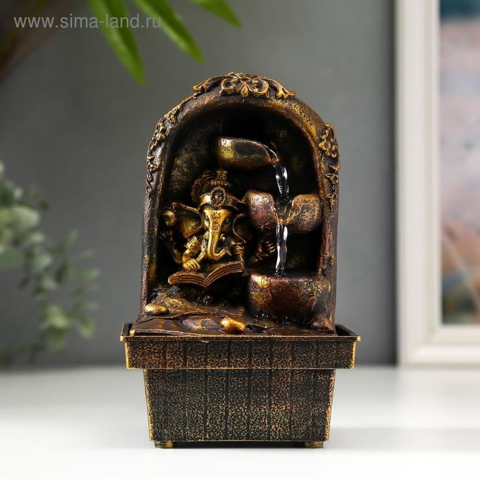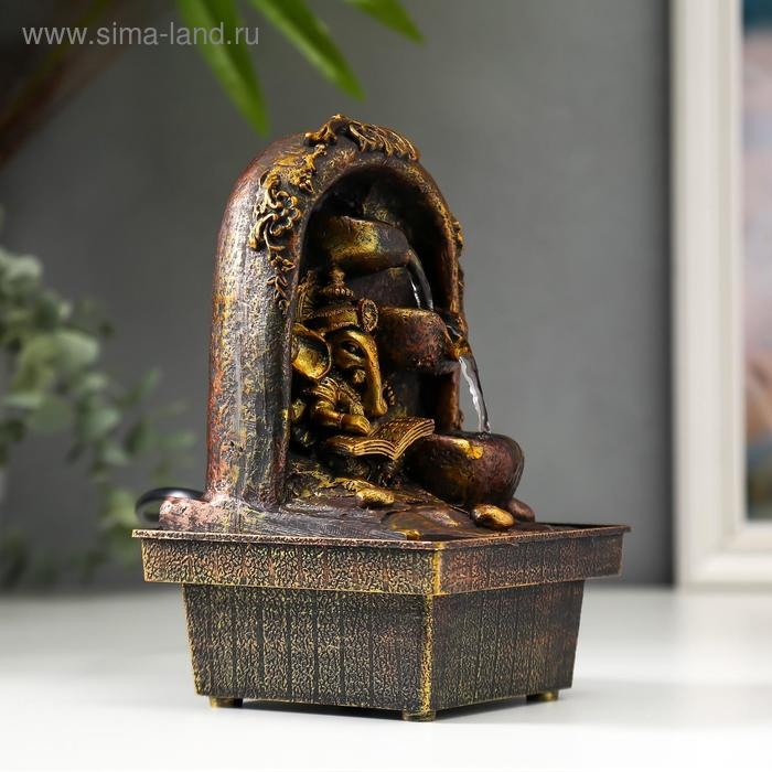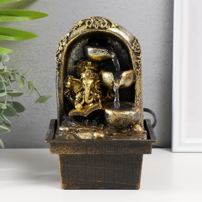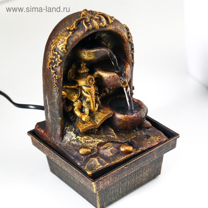 Фонтан настольный от сети "Ганеша с книгой у водопада" 20х12,5х12,5 см