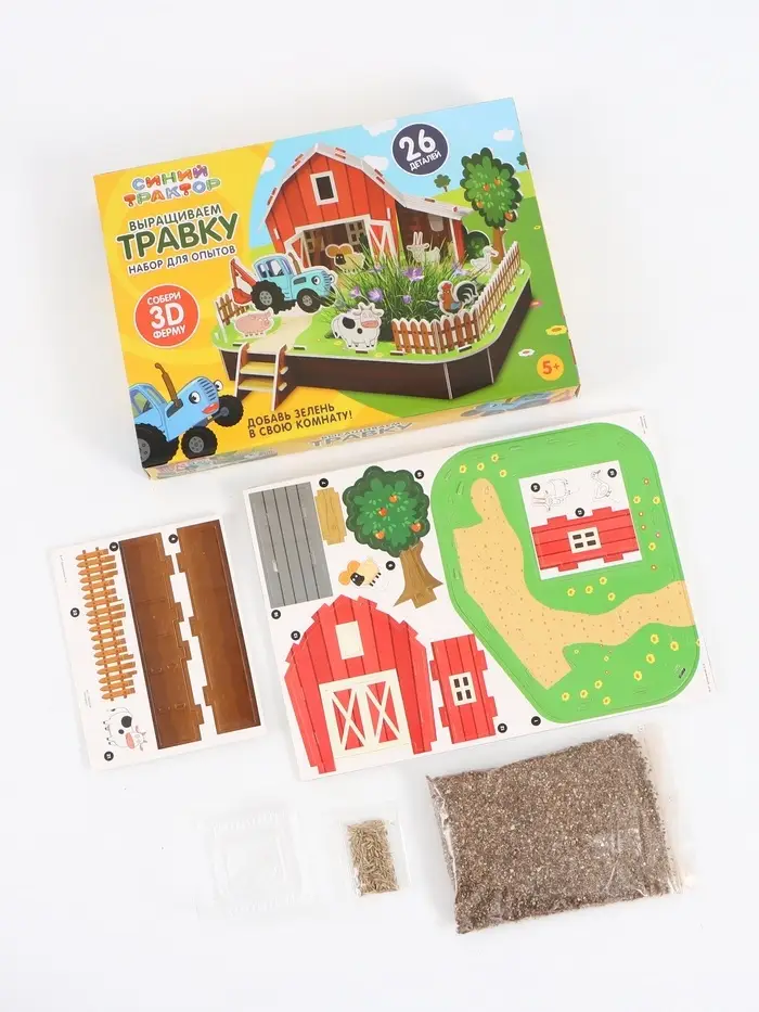 Набор для опытов Синий трактор «Выращиваем травку», 26 деталей