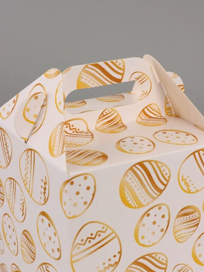 Пасхальная коробочка с окном и с ручкой "Золотые яйца" 10 х 10 х 15 см