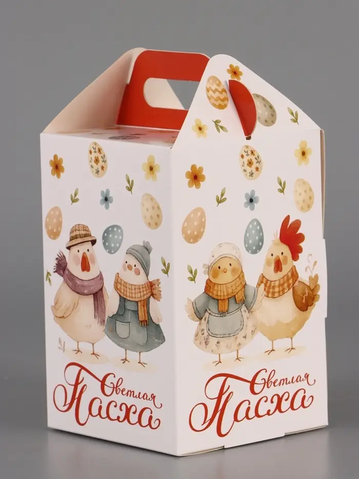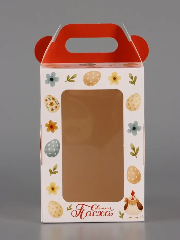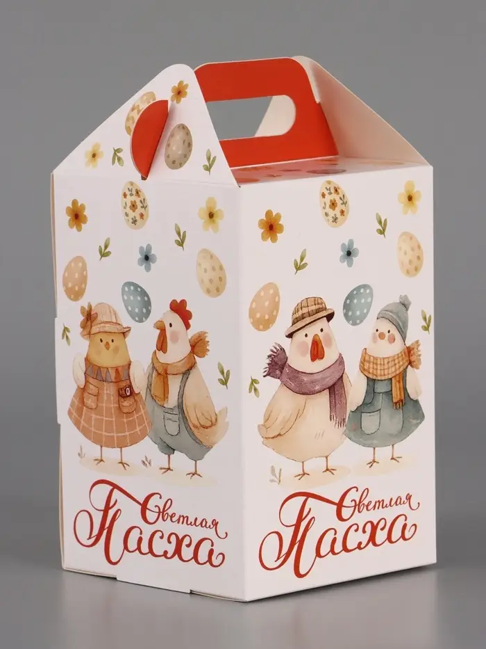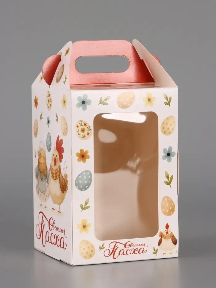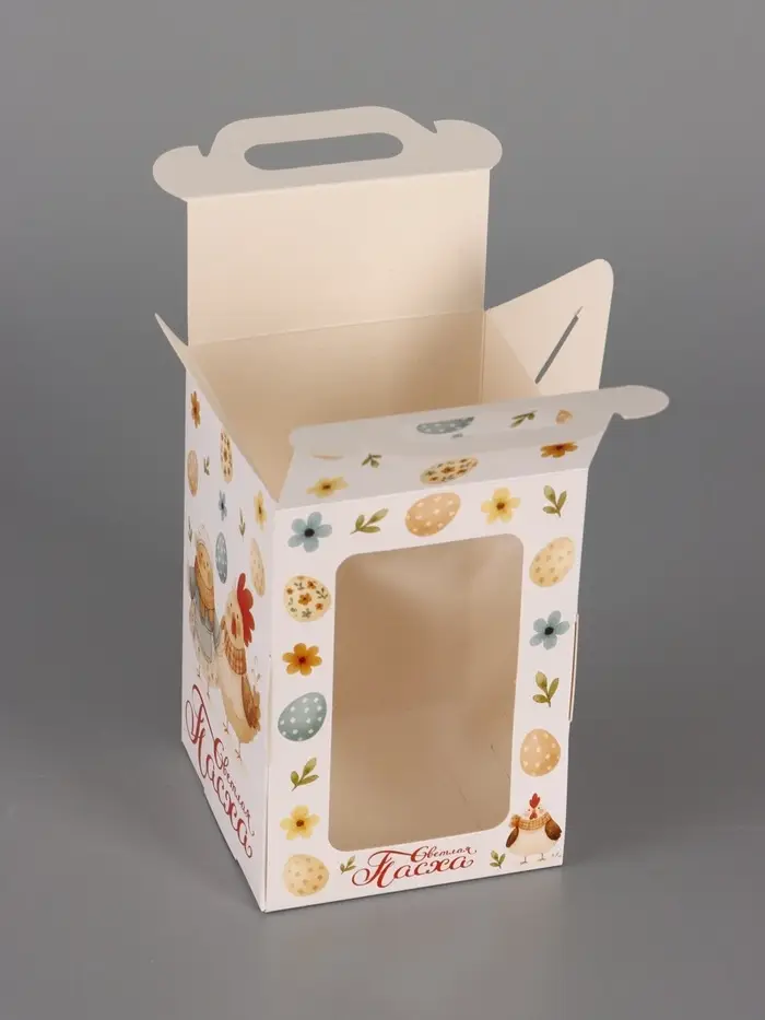 Пасхальная коробочка с окном и с ручкой "Курочки" 10 х 10 х 15 см
