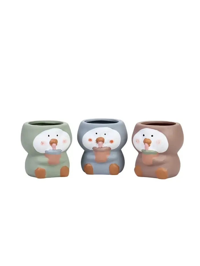 Декоративный горшок для цветов «Пингвины», 9×9×6 см, керамический, МИКС, Greengo