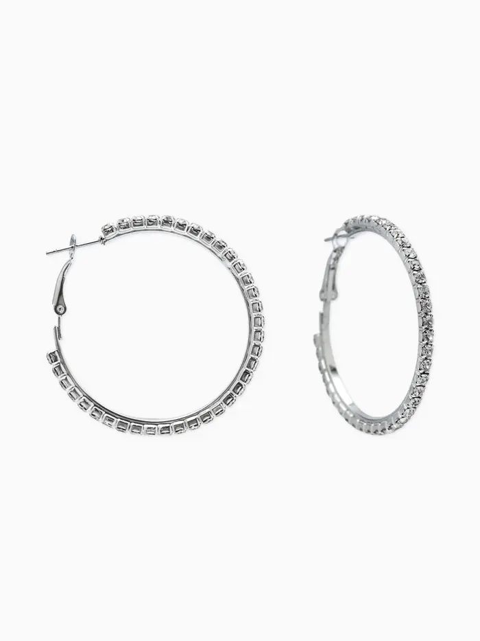 Серьги-кольца со стразами d=4.5 см, белые в серебре