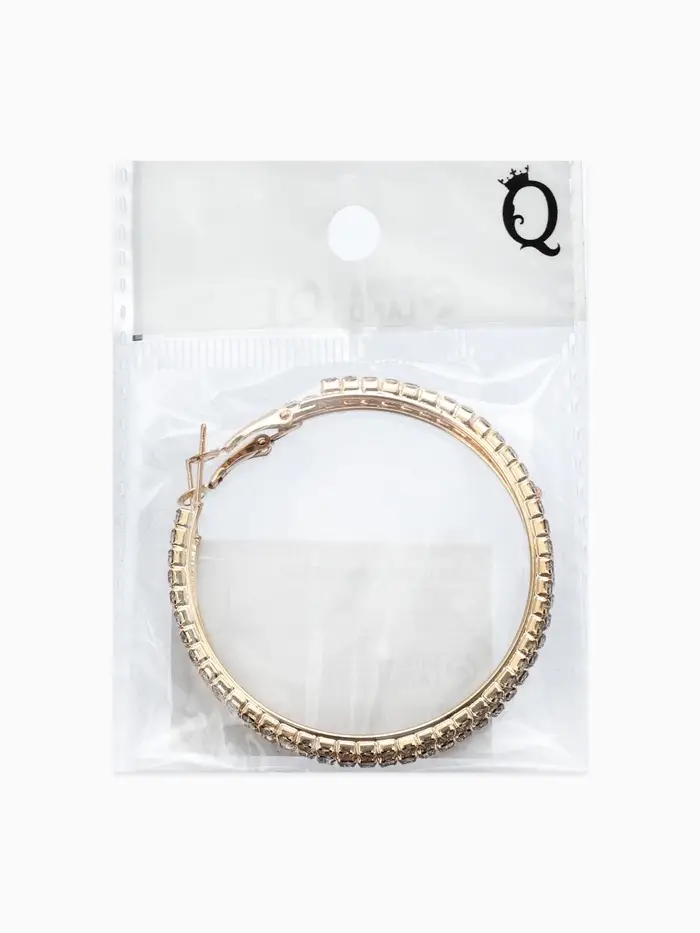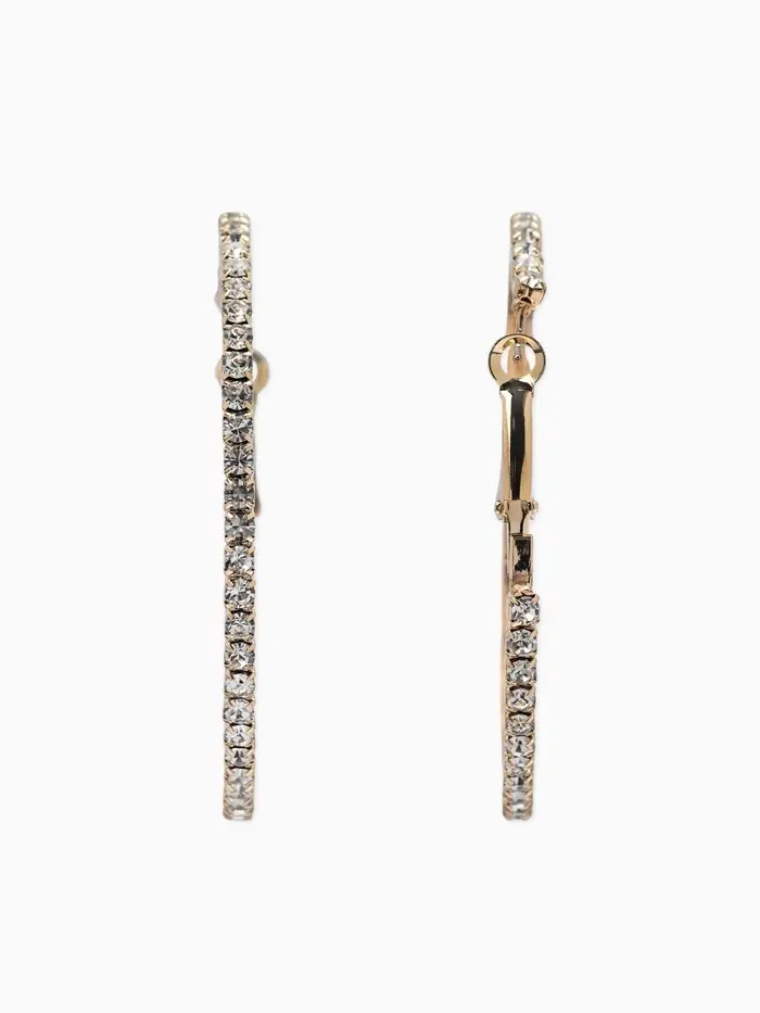 Серьги-кольца со стразами d=5.5 см, белые в золоте