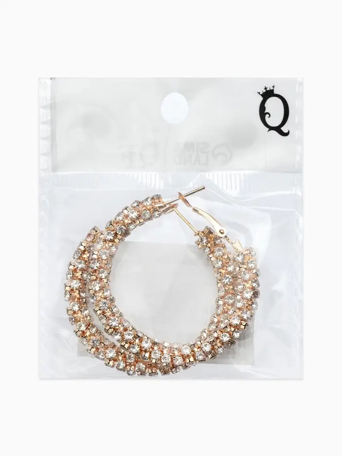 Серьги-кольца со стразами «Россыпь», d=4.5 см, белые в золоте