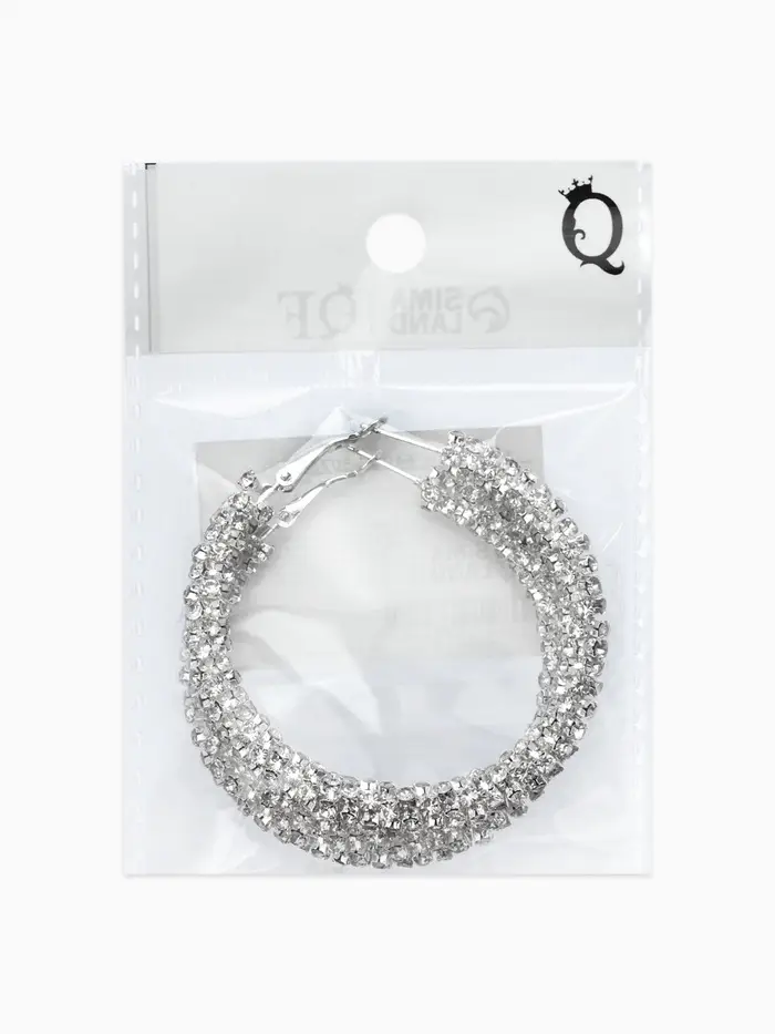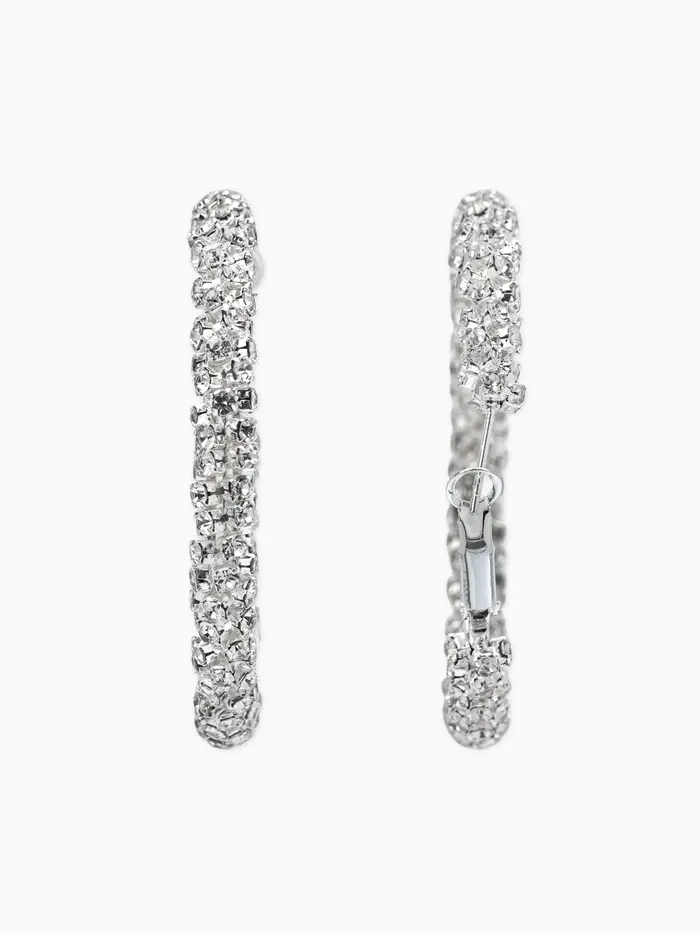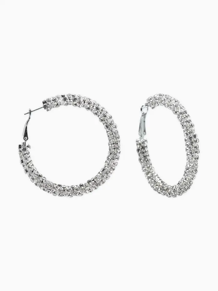 Лицо украшено снегом и льдом! Серьги-кольца «Россыпь» — прекрасное решение для элегантных дам, ценящих зимний антураж и любящих стильный блеск. Массивное кольцо диаметром пять с половиной сантиметров становится платформой для демонстрации десятков сверкающих белых стразов.