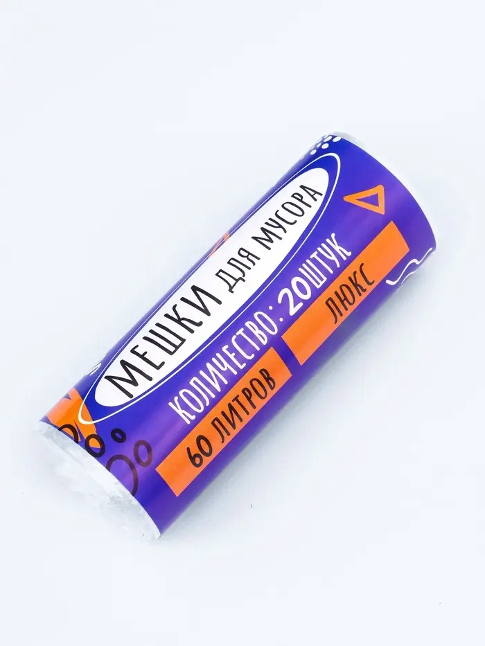 Мешки для мусора, 60 л, 80×50 см, 8 мкм, ПНД, 20 шт., прозрачные, в рулоне