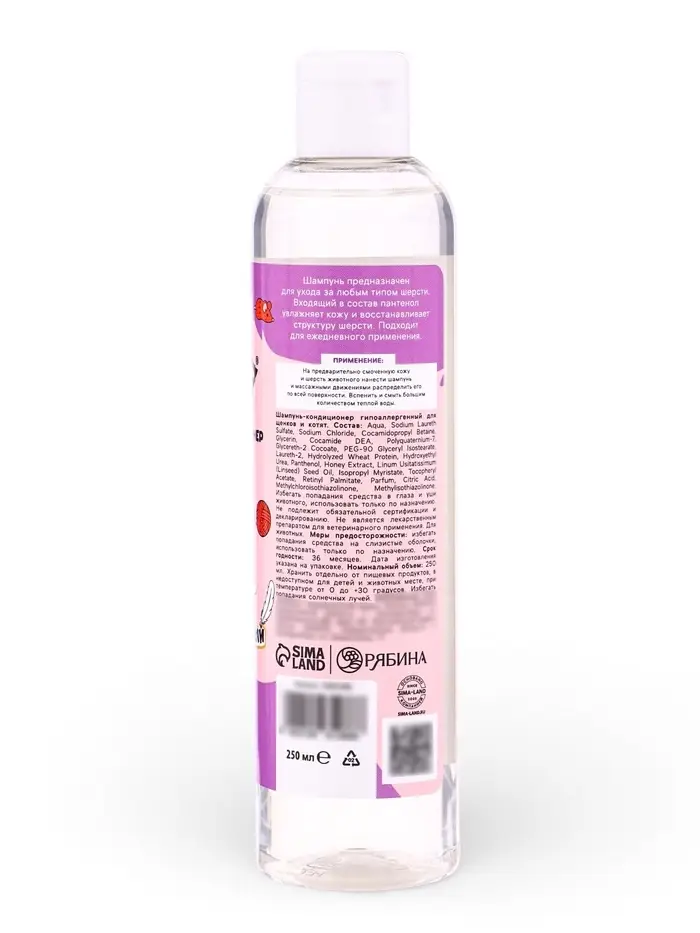 - 250 мл — опитмальный объём: щенки и котята нуждаются в частом, но коротком купании (раз в 4–6 недель в первые месяцы). Этого объёма хватает на 12–15 процедур, что покрывает весь критический период до завершения вакцинации и адаптации к дому.