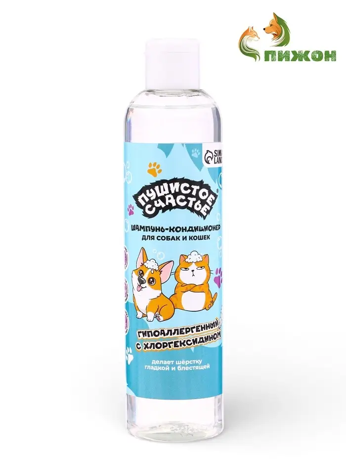 Шампунь - кондиционер для собак и кошек, 250 мл, гипоаллергенный, с хлоргексидином