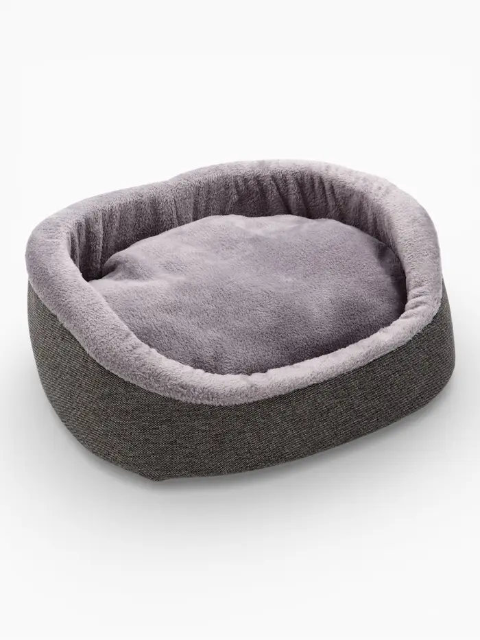 Мягкий контур для расслабленного состояния. Лежанка — не просто место для сна, а продуманная зона отдыха с анатомической логикой. Её фигурная форма повторяет естественные изгибы тела кошки или мелкой собаки в позе покоя: поддержка под грудью, пространство для лап, лёгкое обрамление без давления. Серый оттенок делает её нейтральным элементом интерьера — не привлекает внимание, но всегда на своём месте.