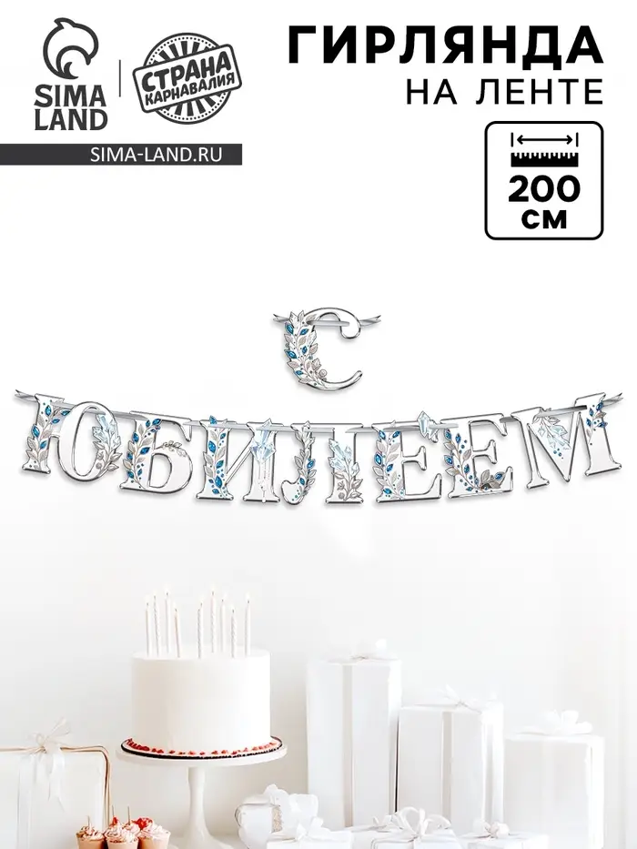 Гирлянда на ленте «С Юбилеем», 200 см, серебро