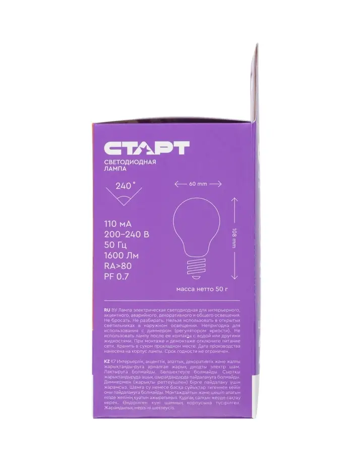 Лампа светодиодная СТАРТ, 20 Вт, Е27, 4000К, 1600 лм, свечение нейтральное белое