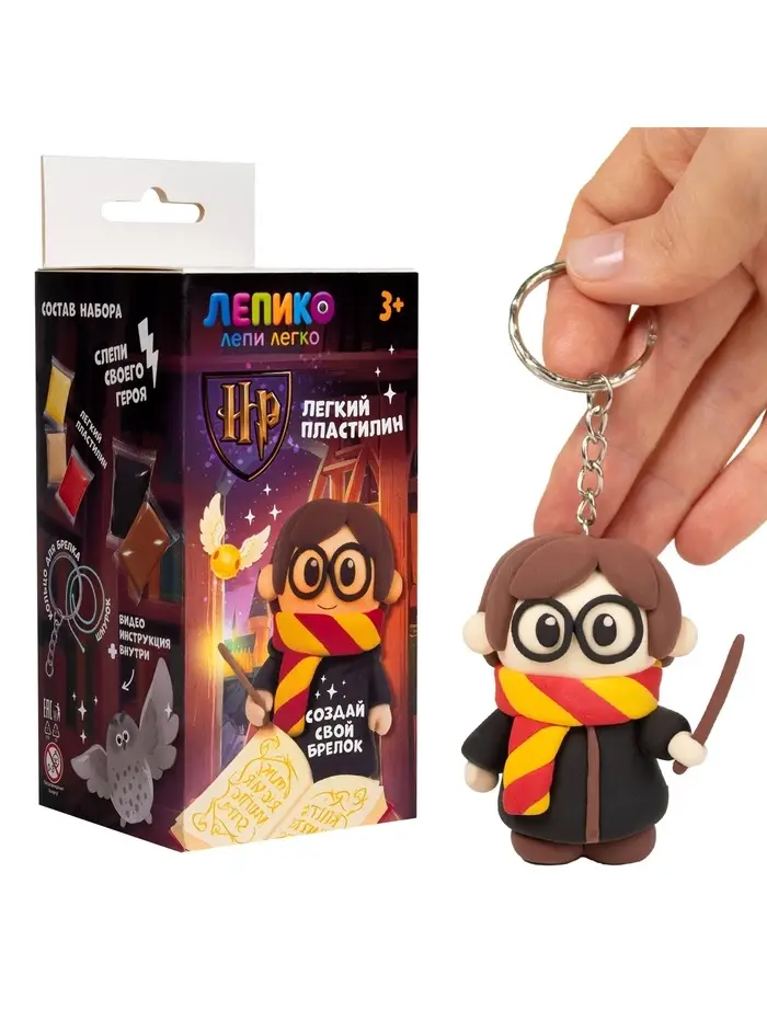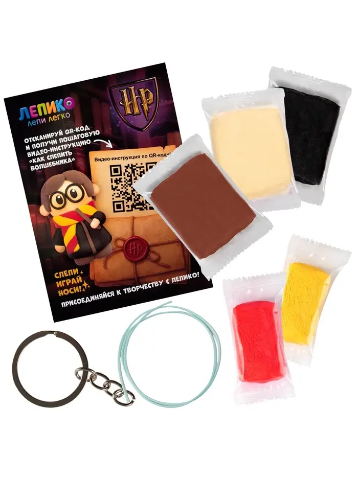 В наборе: легкий пластилин - 5 цветов; фурнитура (кольцо для брелока, шнурок).