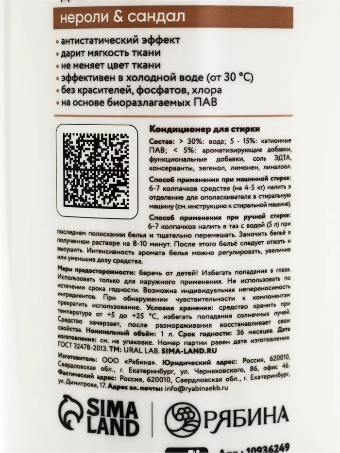 Кондиционер для белья, аромат нероли и сандал, 1000 мл, ULAB