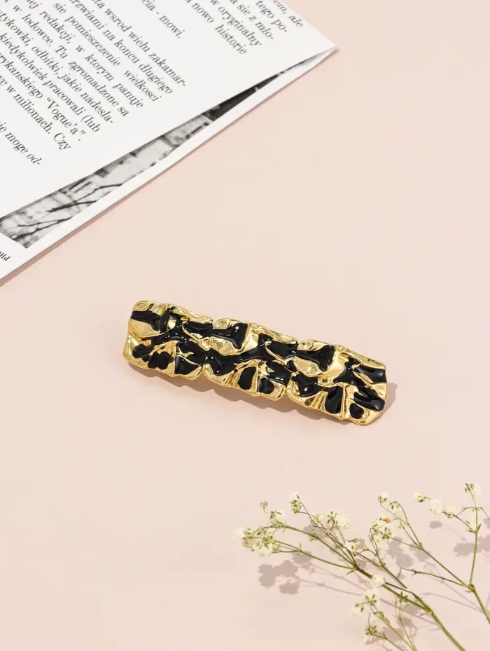 Заколка-автомат для волос "Филомена" прямой, 9 см, чёрно-золотой