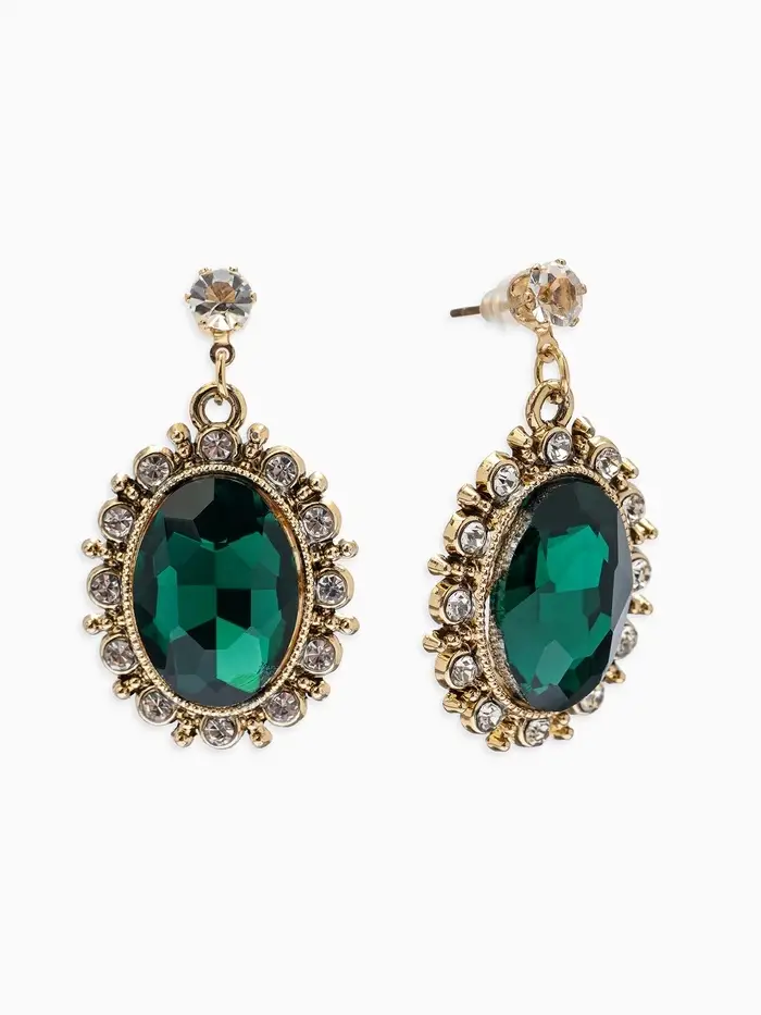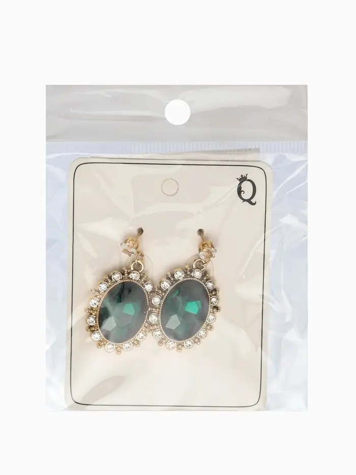 Серьги со стразами "Овал грань", цвет изумрудный в золоте
