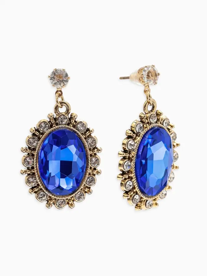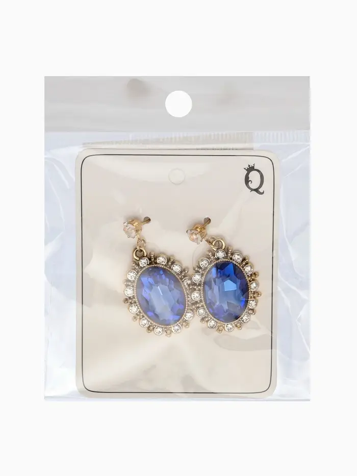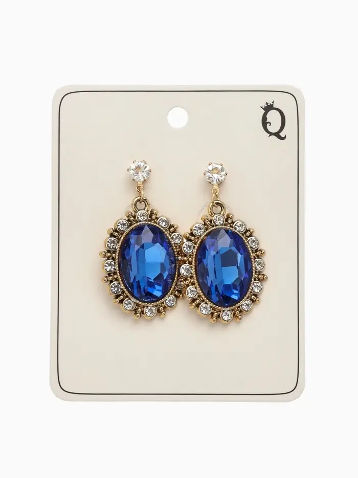 Серьги со стразами "Овал грань", цвет ярко-синий в золоте