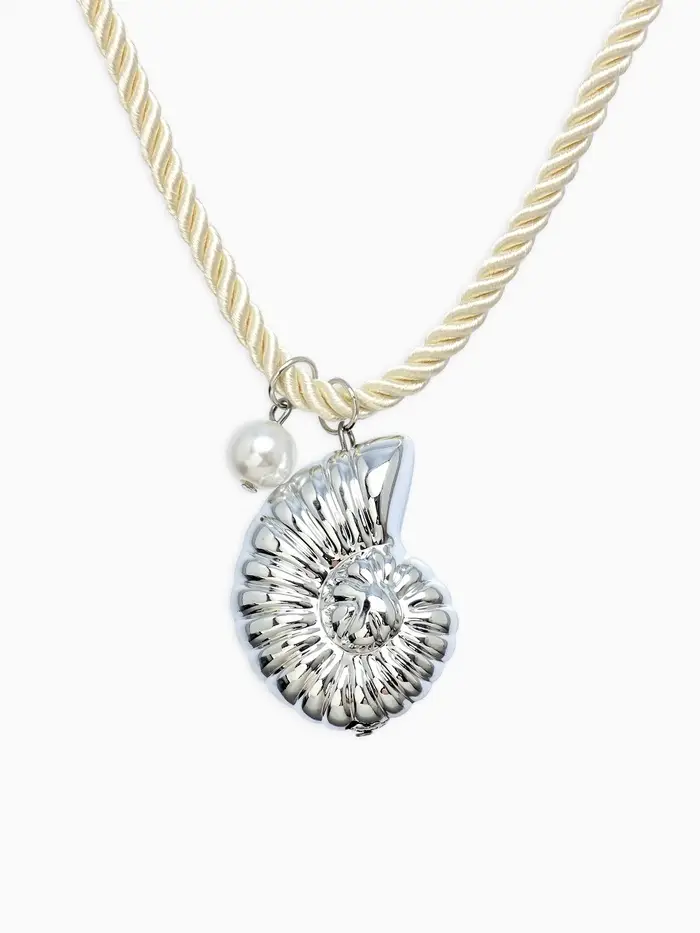Кулон на жгуте текстильном "Ракушка", цвет бело-серебристый