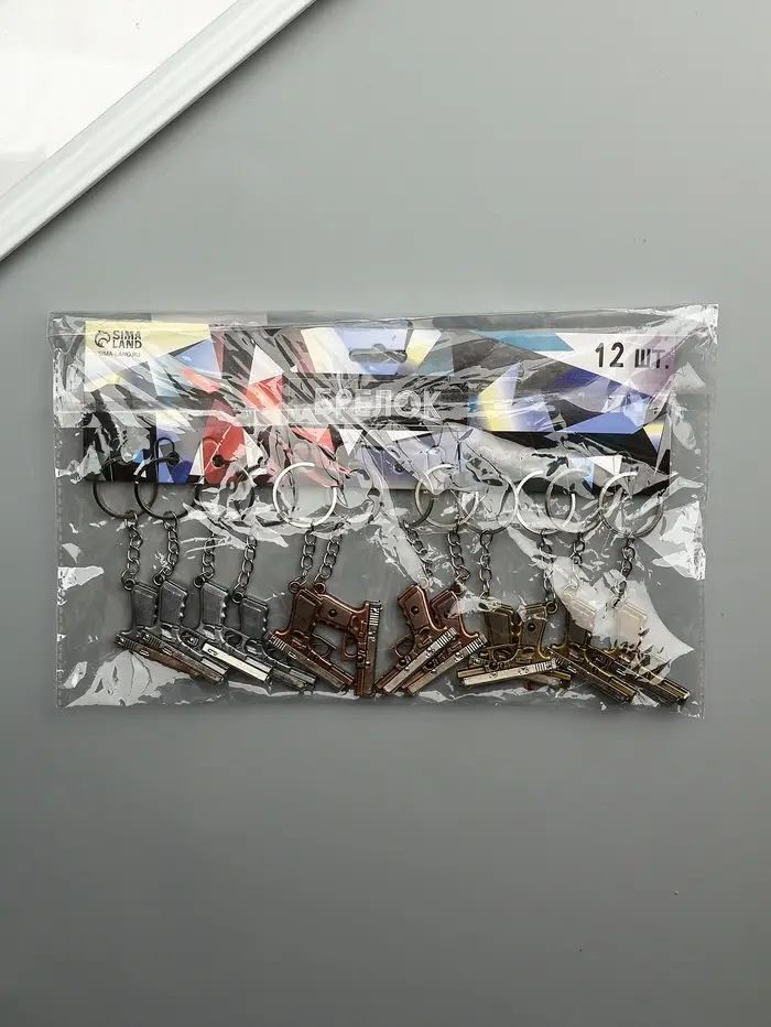 Брелок металл "Пистолет" двигается затвор МИКС 3х4,3х0,5 см