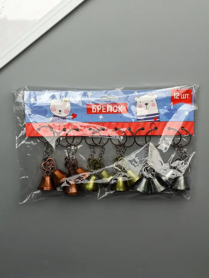 Брелок металл "Колокольчик - медвежонок в сердце" МИКС 5х2,8х2,8 см