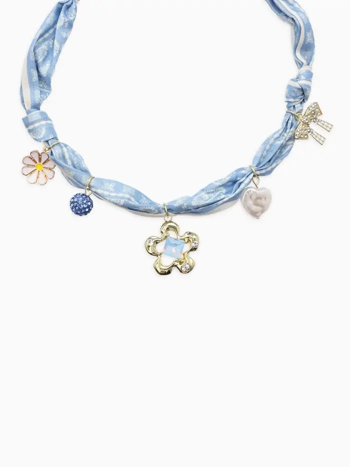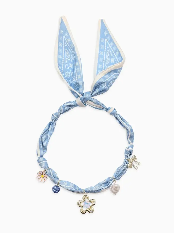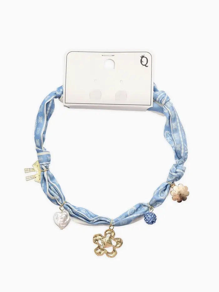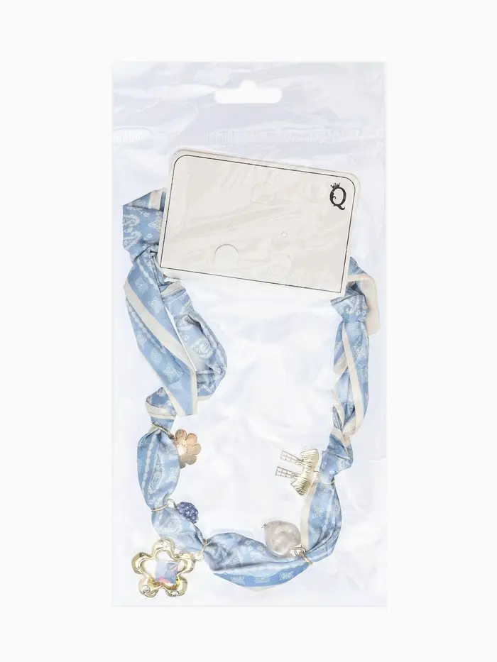 Колье-чокер на платке "Стиль". цвет голубой с золотом