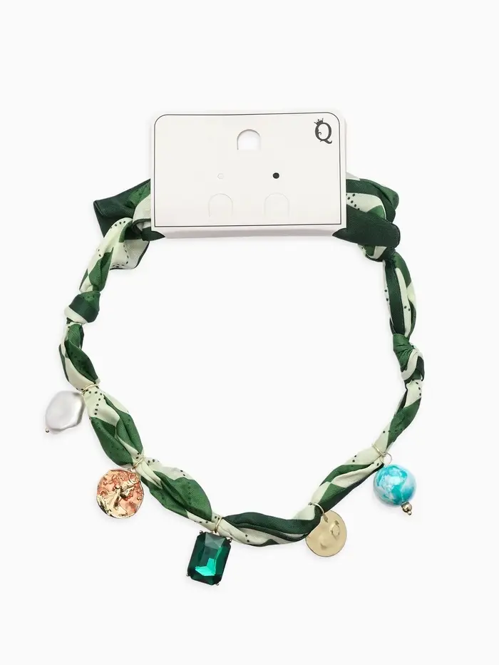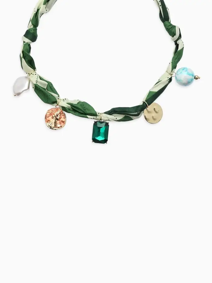 Колье-чокер на платке "Стиль". цвет изумрудный с золотом