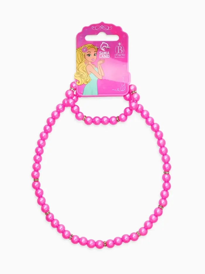 Набор детский «Выбражулька» 2 предмета: бусы, браслет, жемчуг стразы, цвет ярко-розовый