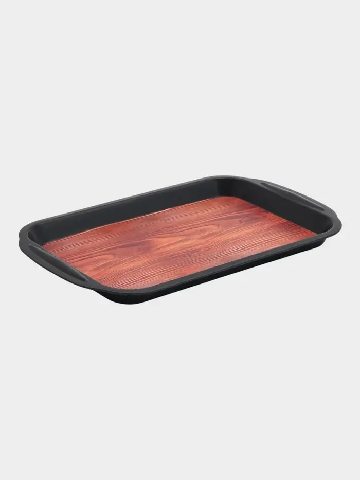Поднос для подачи с ручками "ФьюженВуд", прямоугольный, 37,5х24х2,5 см, цвет черный, пластик 10918