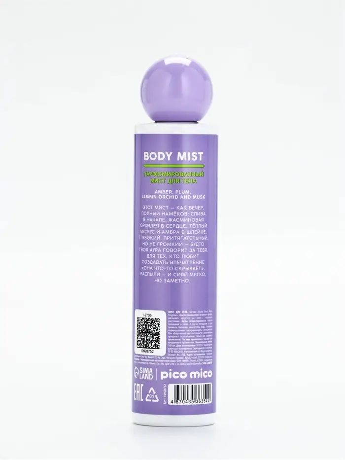 PICO MICO Мист для тела, 168 мл, аромат амбра, слива, жасминовая орхидея и мускус