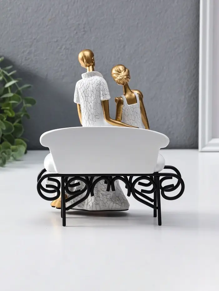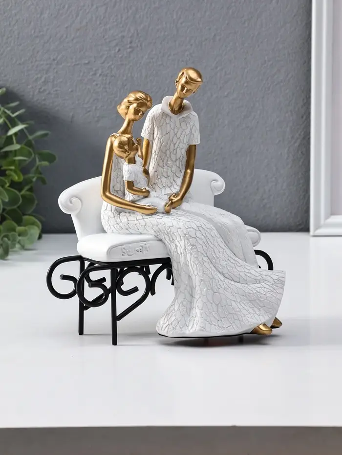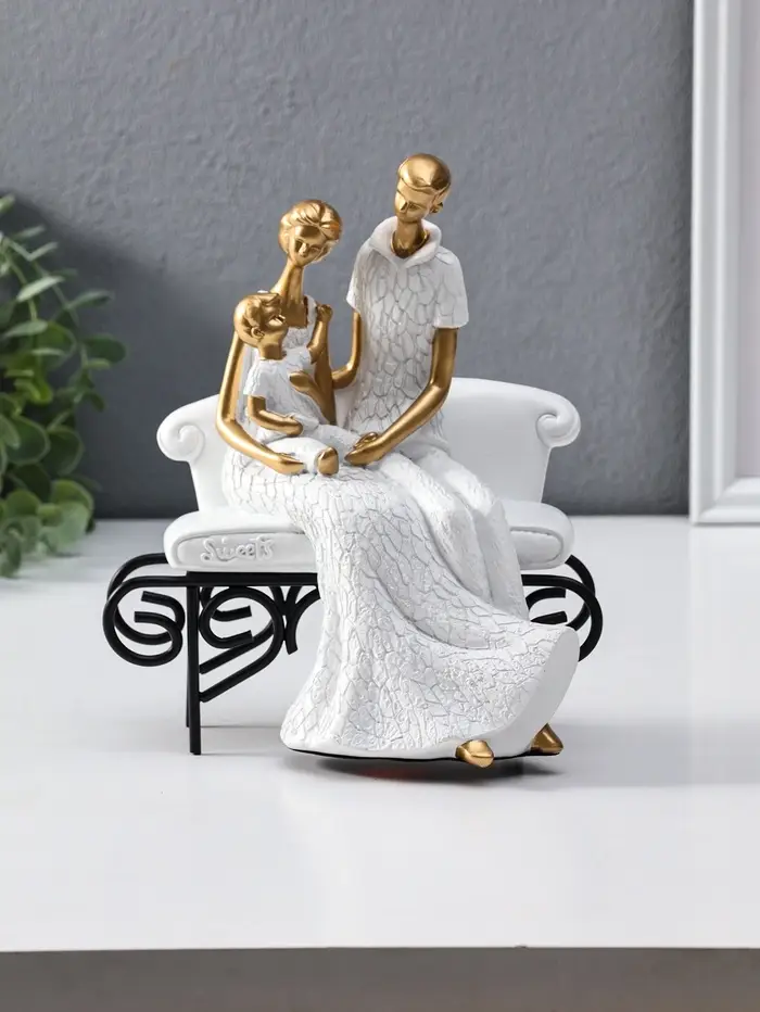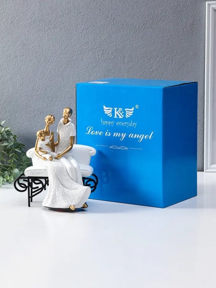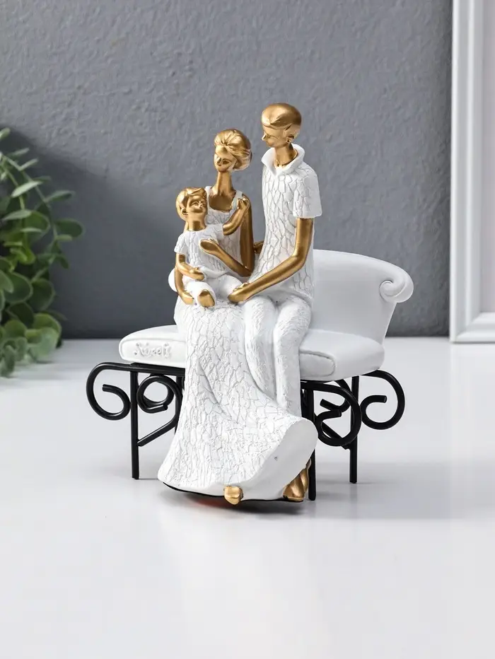 Сувенир полистоун "Родители с малышом на диванчике" бело-золотой 12,5х18х22,5 см
