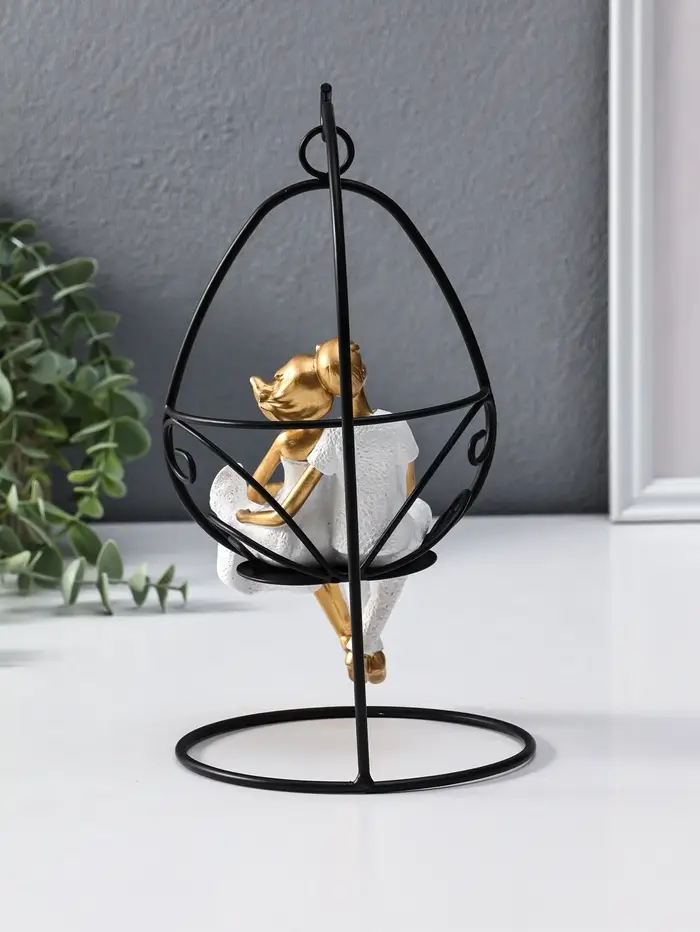Сувенир полистоун "Парочка качается на качеле" бело-золотой 13,5х13,5х26 см