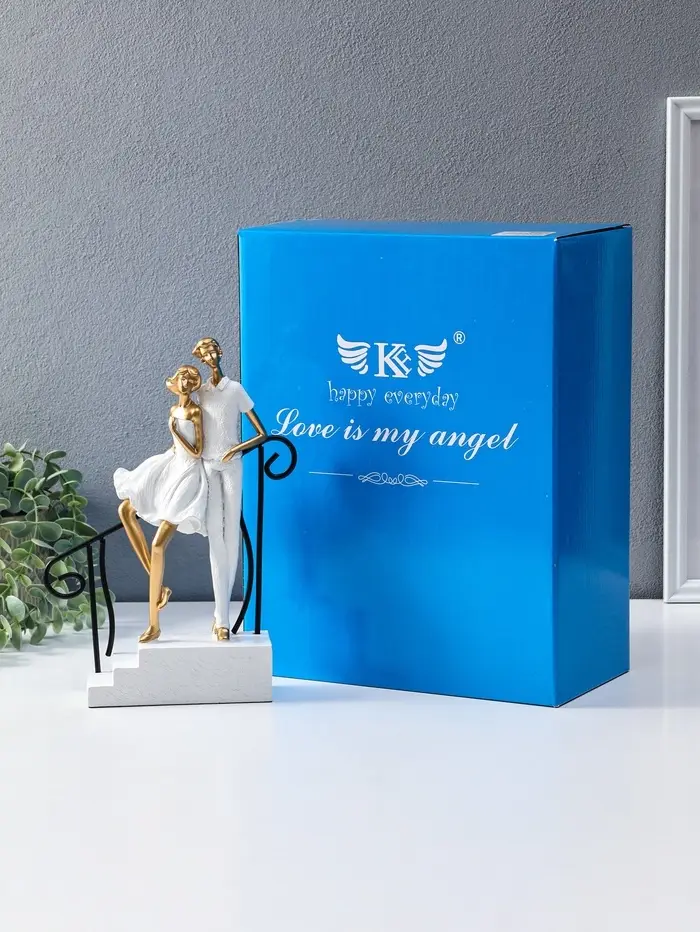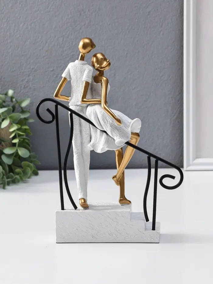 Сувенир полистоун "Парочка стоит у перил" бело-золотой 5,5х20х26,5 см