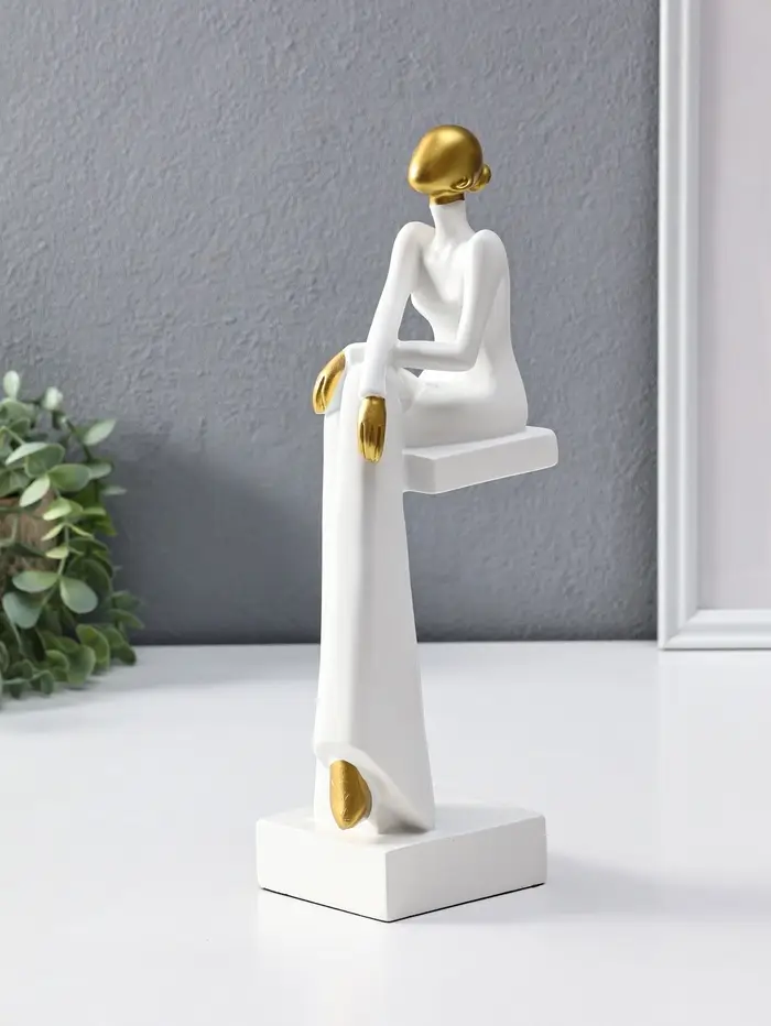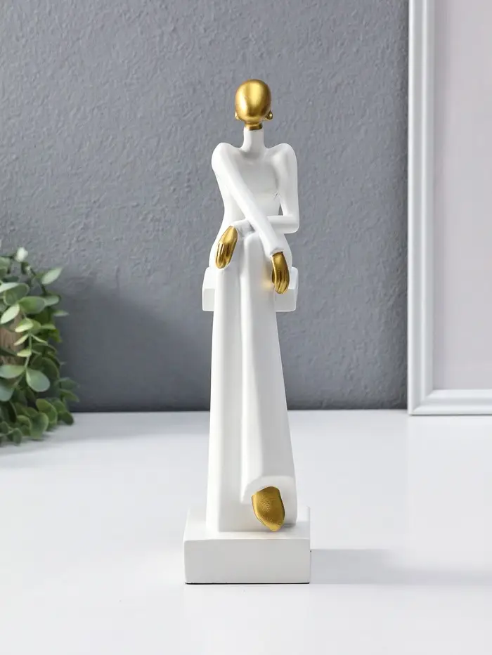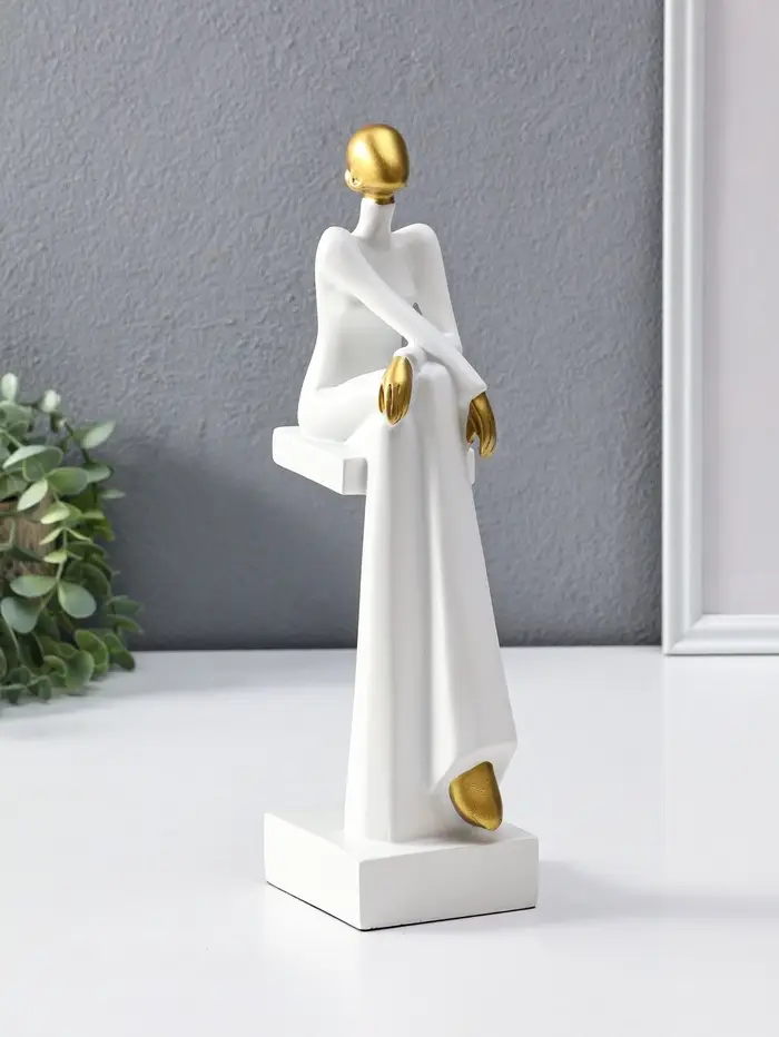 Сувенир полистоун "Стильная девушка на стуле" белый с золотом 7,5х10,5х29,5 см