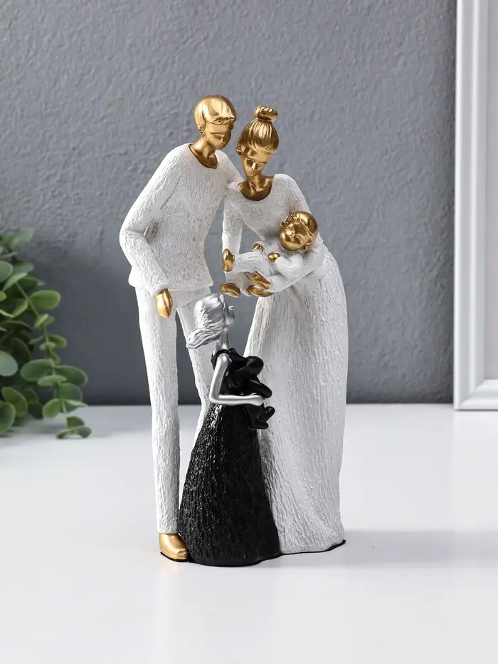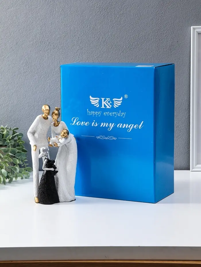 Сувенир полистоун "Родители с детьми" бело-золотой 8,5х13х25 см