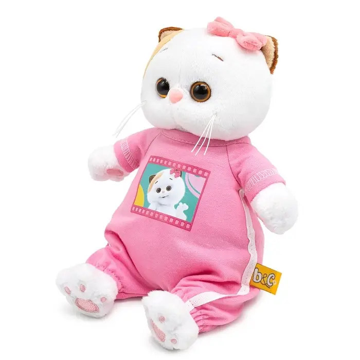 Мягкая игрушка "Кошечка Ли-Ли в комбинезоне с принтом "Мультсериал", 18 см LKm18-004