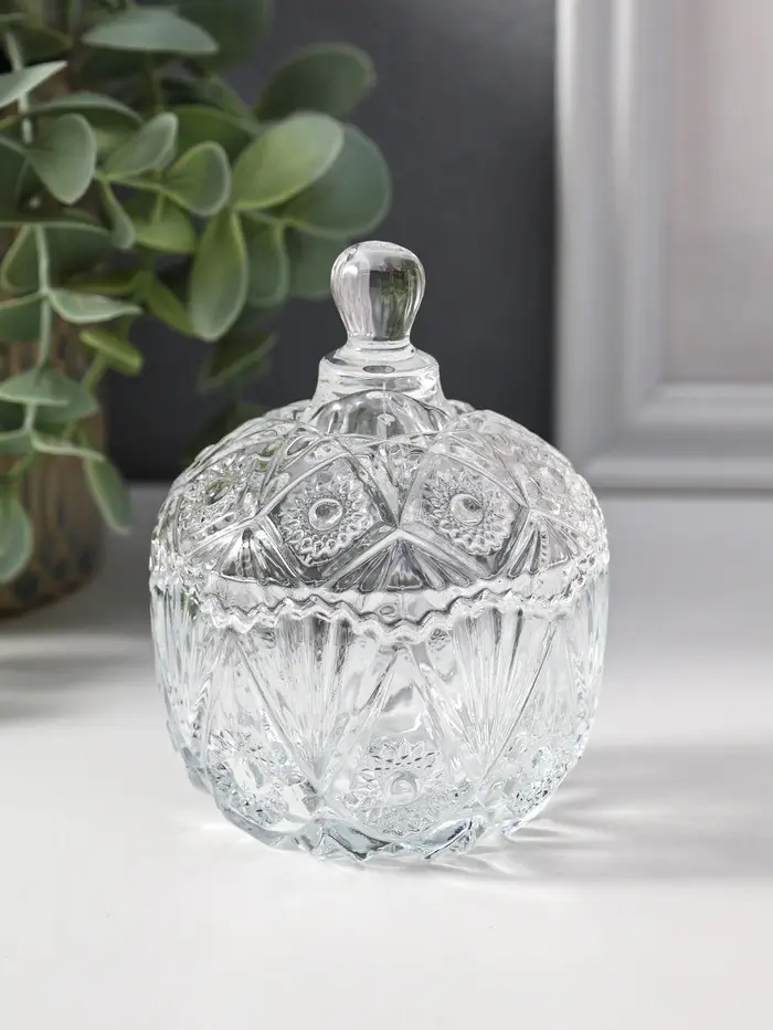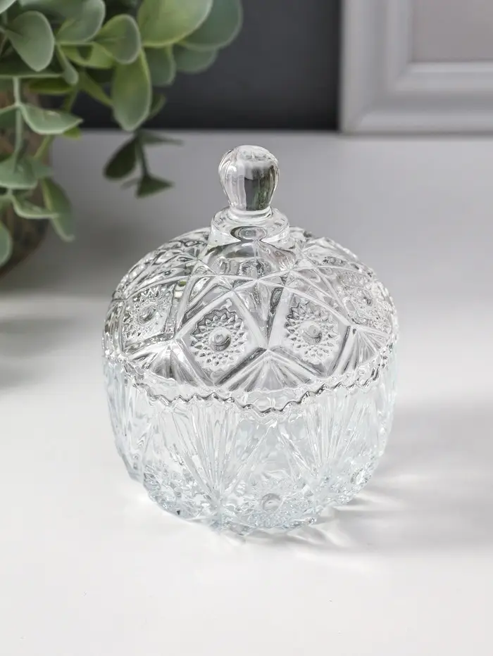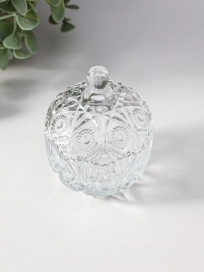 Шкатулка стекло "Цветочная" прозрачная 6,8х6,8х9 см