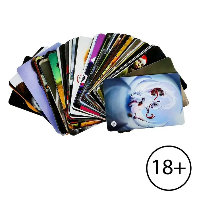 В наборе 98 жутких и очаровывающих, откровенных и притягательных иллюстраций. Смешайте их с классическими картами или используйте отдельно. Они погрузят вас в мир фантасмагории и сюрреалистических образов.