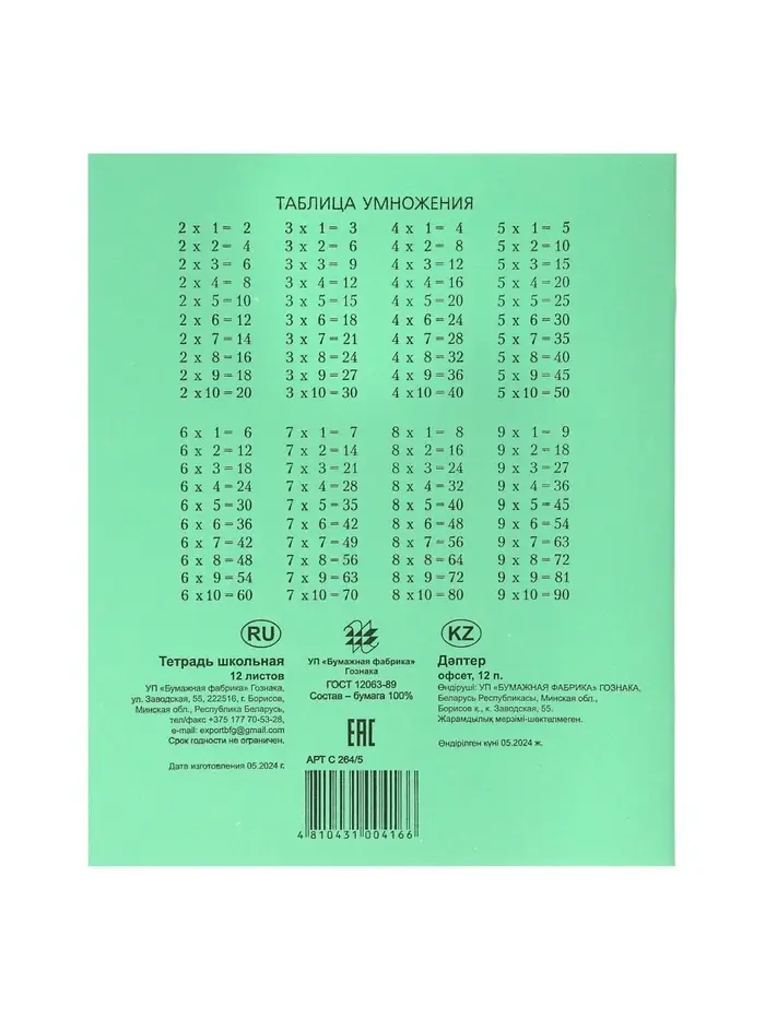 Компл тетр из 10шт 12л кл Зелёная обложка Гознак, 60г/м2, офсет бел 100% (744283)