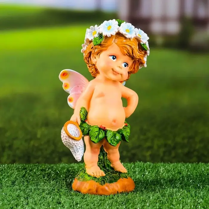 Садовая фигура "Цветочная фея с сачком" 7,5x12x20см