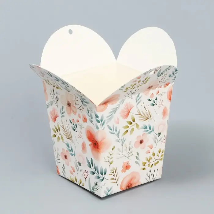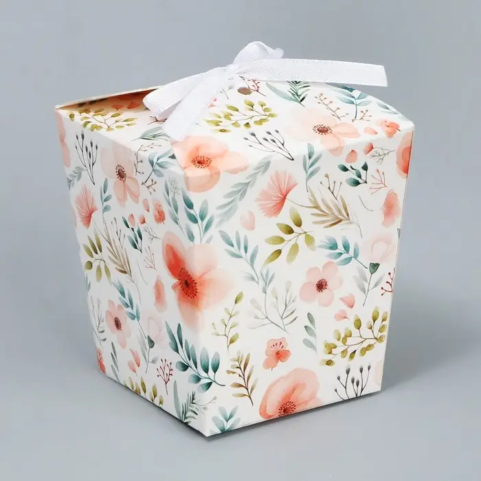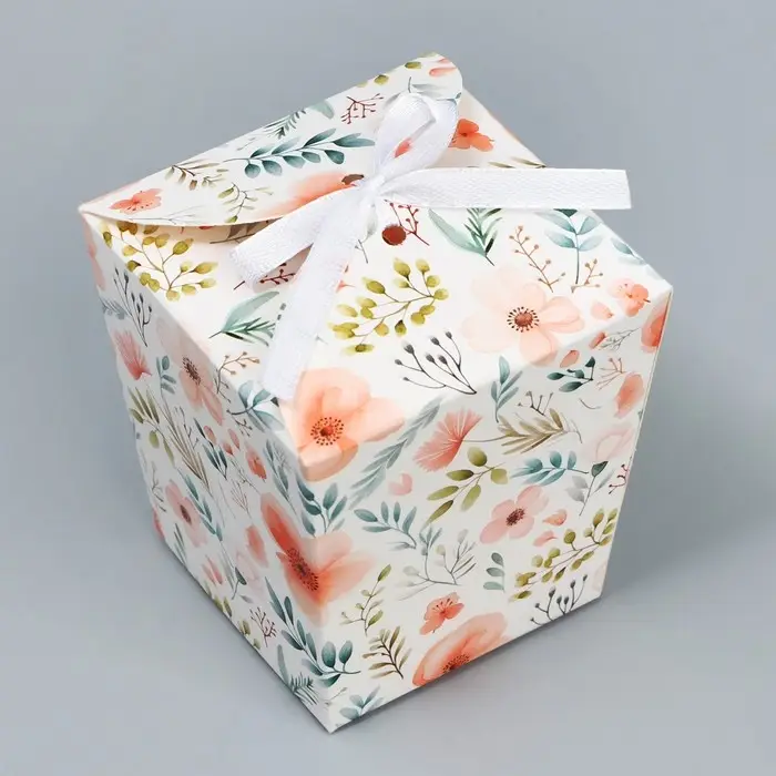 Коробка бонбоньерка, упаковка подарочная, «Акварельные цветы», 7.5 х 8 х 7.5 см