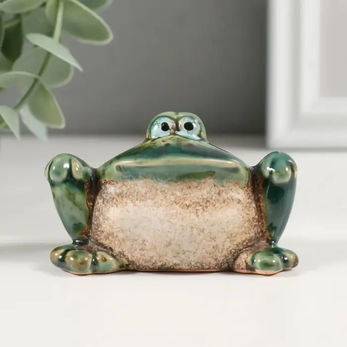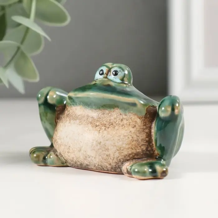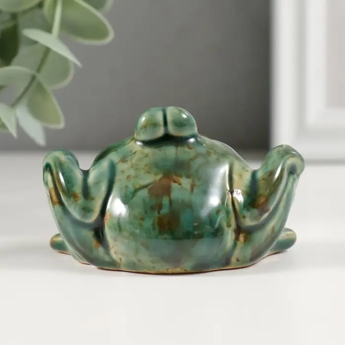 Сувенир керамика "Зелёная лягушка с лапками на коленях" 4,7х7,2х4,5 см