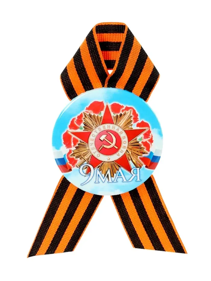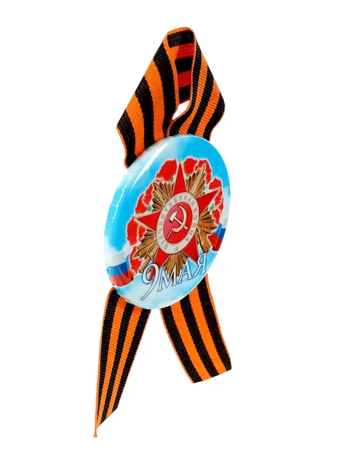 Значок закатной с георгиевской лентой «9 мая»