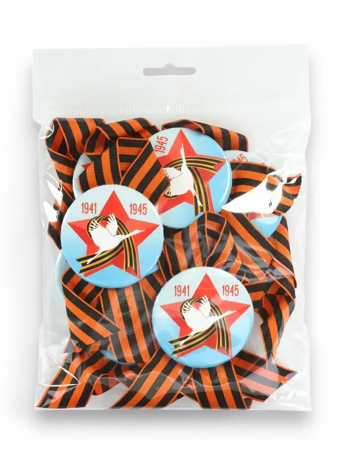Значок закатной с георгиевской лентой «9 мая. 1941-1945»