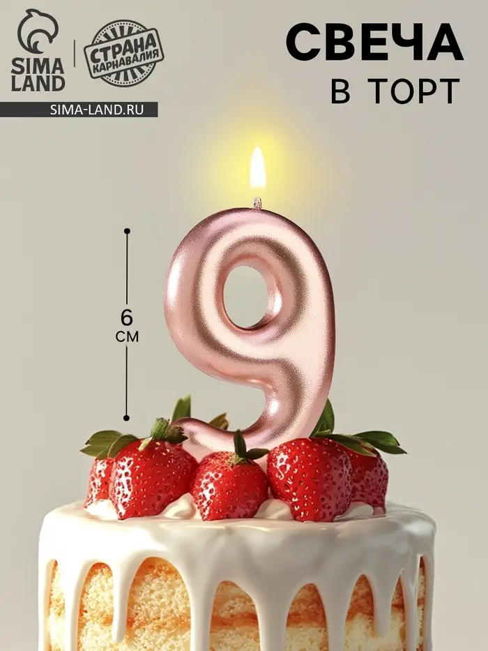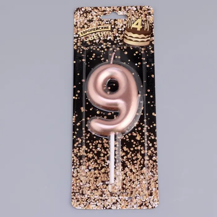 Свеча в торт «Европейская», цифра 9, 6 см, розовое золото