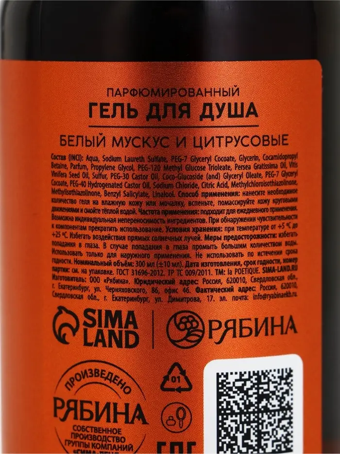 Гель для душа парфюмированный, аромат белый мускус и цитрус, 300 мл, laPOETIQUE