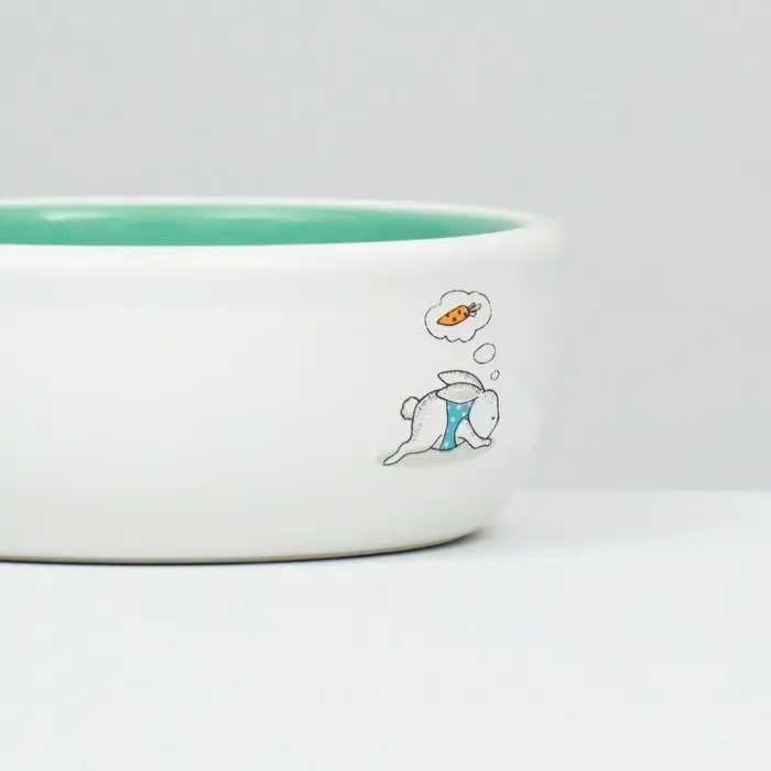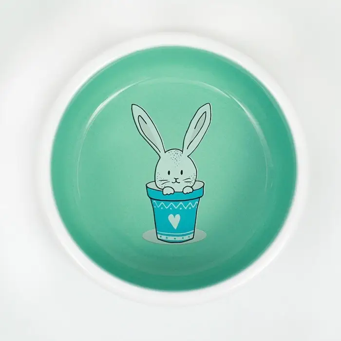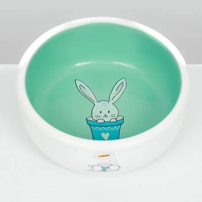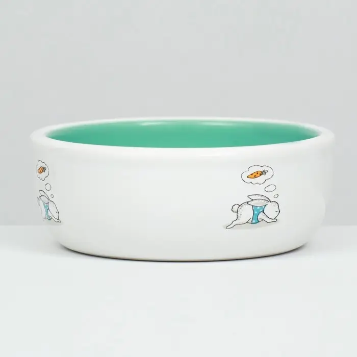 Миска керамическая для кроликов 200 мл 10 х 3,7 см, мятная/белая