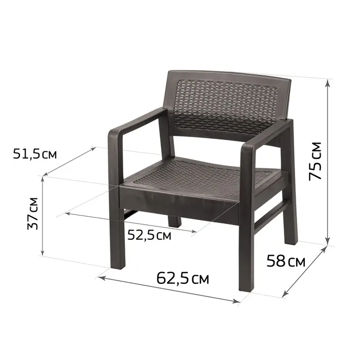 Кресло садовое «Ротанг», пластик, 58×62.5×75 см, мокко