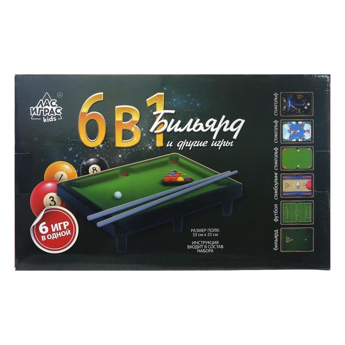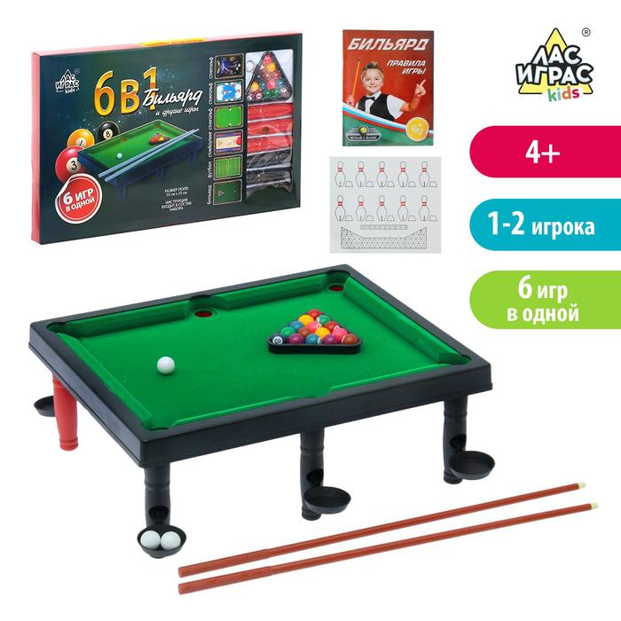Настольный бильярд «6 в 1: бильярд, стикбол, стикбоулинг, стик гольф, фингербол», 1-2 игрока, 4+